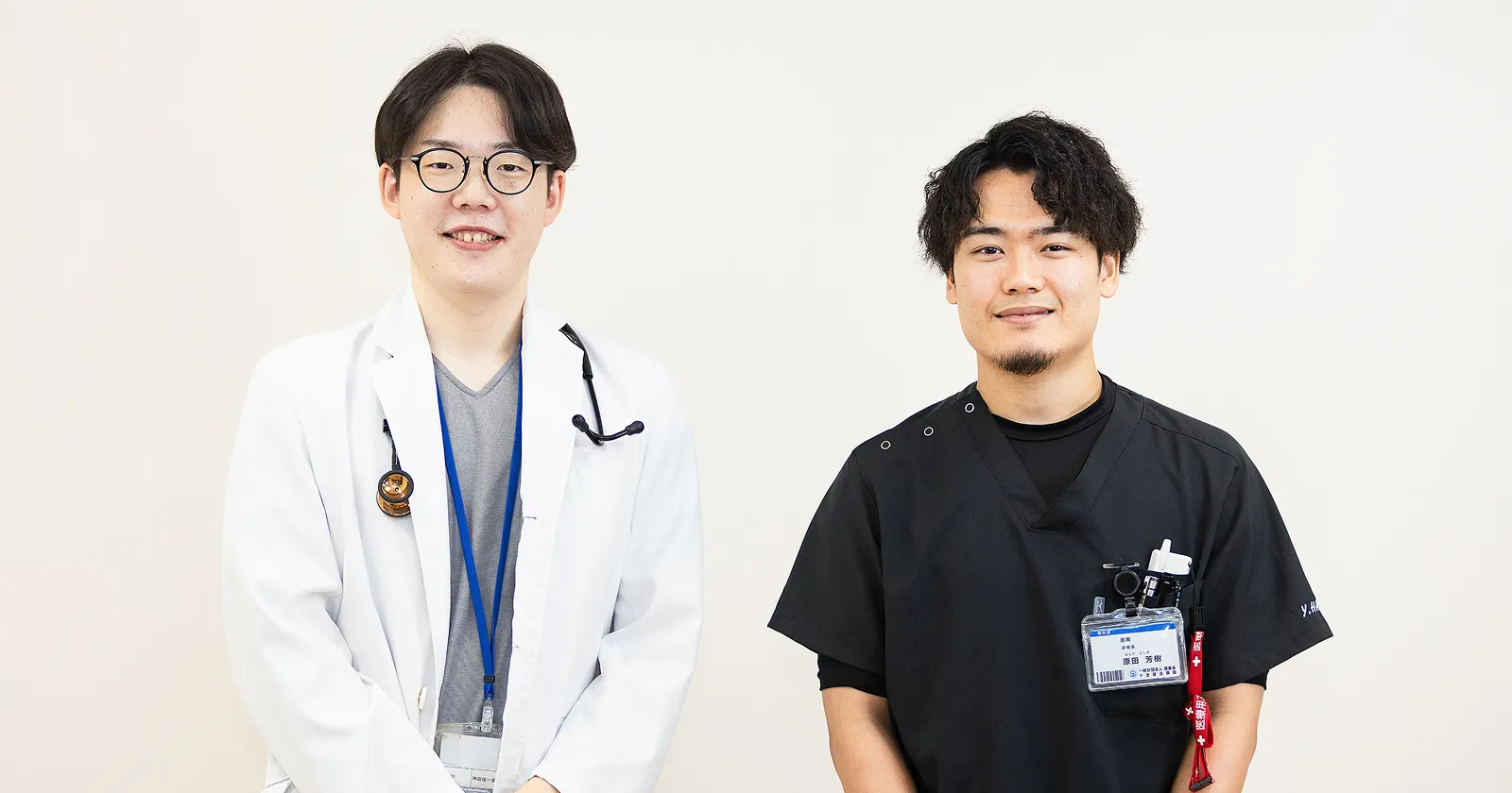 そんな現場のリアルな声に応えるツールとして、CareNeTVが活用されています。今回、研修医1年目の原田芳樹先生と研修医2年目の神田信一郎先生に、実際の活用状況と導入後の変化について語っていただきました